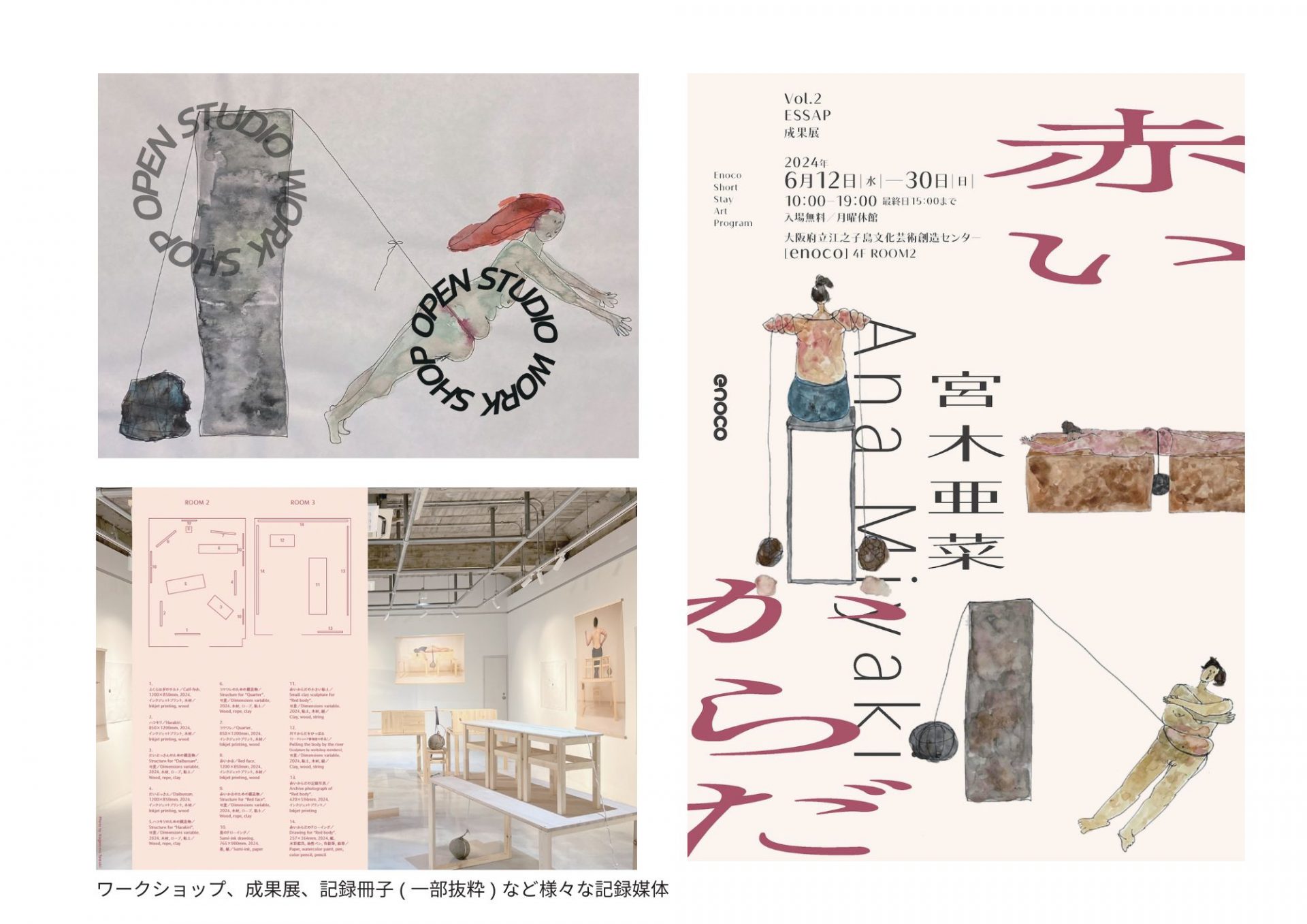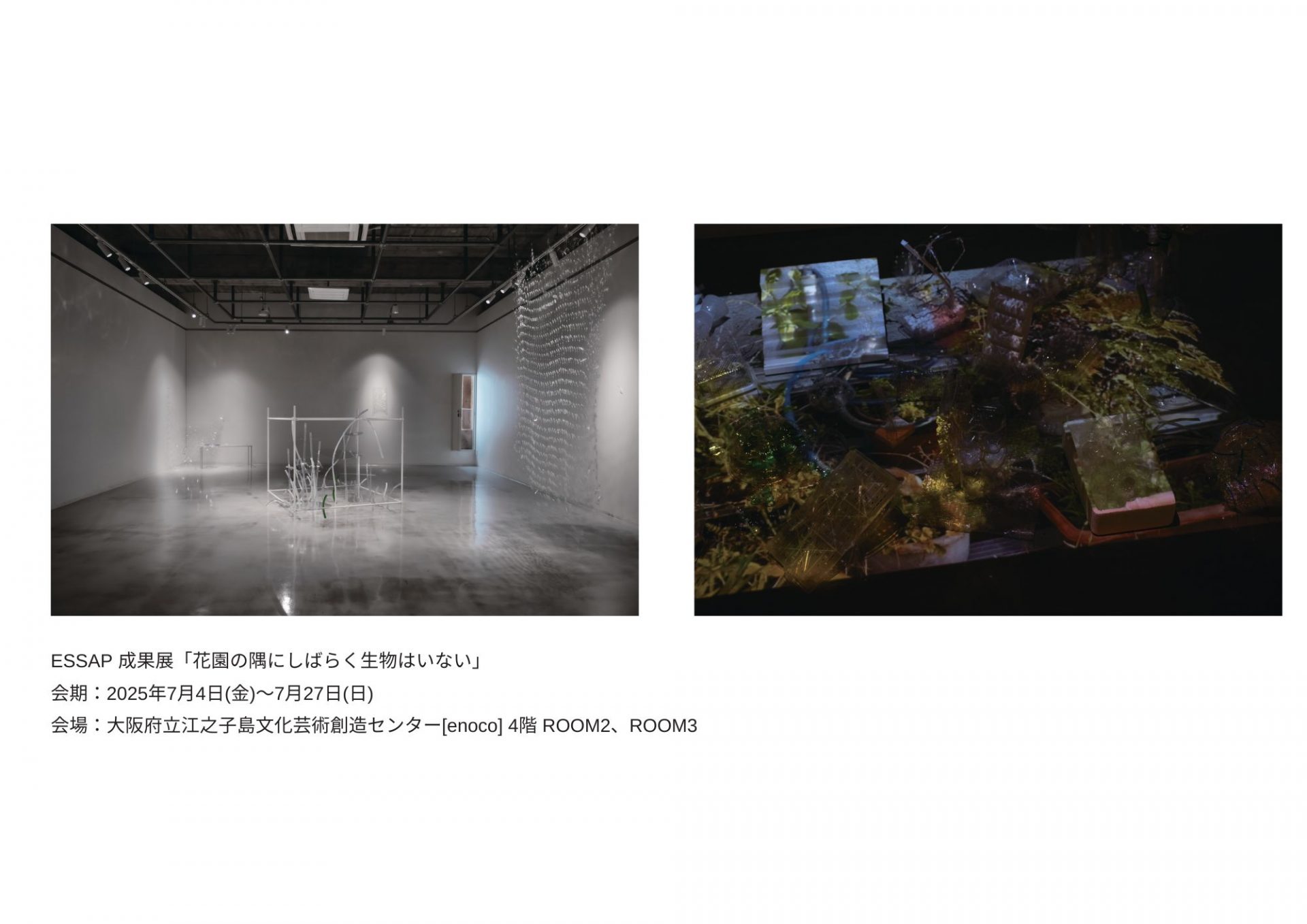 ESSAPは、enocoを文化芸術の拠点として更に機能させるため、アーティスト、観客、地域住民、運営スタッフなど多様な人々が行き交う場を形成し、地域の活性化を目指すプログラムです。国内外で活動する若手アーティストを対象に、3〜4週間程度の滞在制作環境を無償で提供し、その成果を展覧会、トークイベント、ワークショップ等で発表します。この取り組みにより、アーティストが新たな視点を獲得すると同時に、地域の人々が芸術に触れる機会を増やし、相互理解と交流を促進しています。