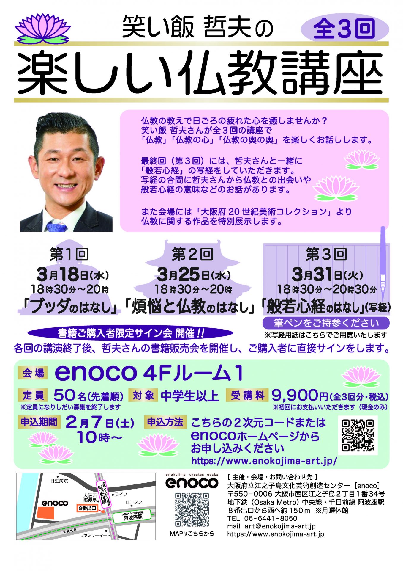 笑い飯 哲夫さんが全3回の講座で「仏教」「仏教の心」「仏教の奥の奥」を楽しくお話しします。
