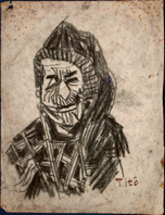 丸く様式化された子どもの顔、輪郭線により単純化されたフォルムが伊藤の特色です。